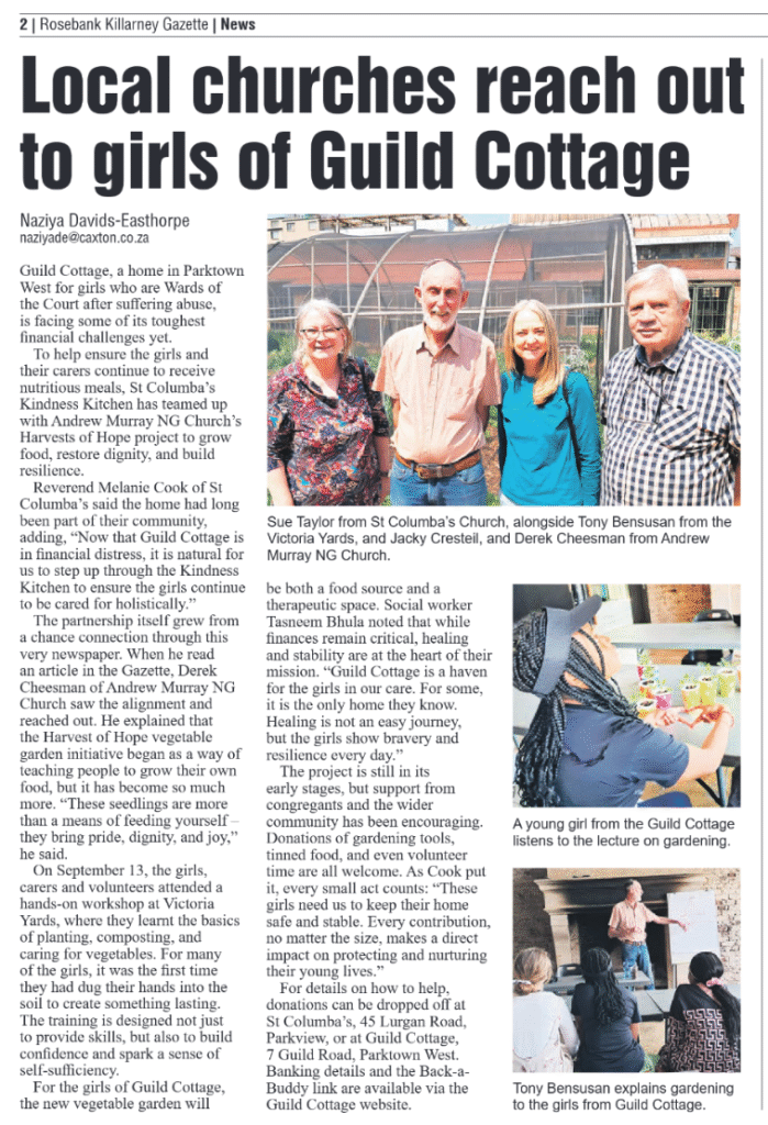 On Sat 11th October, Tony had a site visit to Guild Cottage together with Derrick from Gardens of Hope, Arthur Murray church in Norwood – to advise on expanding their food garden, grow more of their own food and provide the girls with a skill that they could take away when they leave the centre.